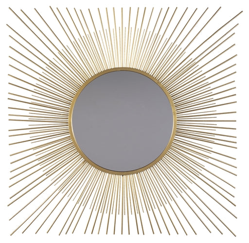 Signature Design by Ashley®This accent mirror is a contemporary musing. Its breathtaking sunburst design shines in goldtone metal. And the mirror’s beautifully large scale ma...