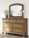 Details PCB779B7: Includes panel headboard, footboard and rails, Made with poplar solids, pine veneer and MDF substrate, Side rails feature laminated solid hardwood slat support rails (or LVL) with glued and screwed blocking for added strength, Chestnut brown wood-tone finish, Foundation/box spring required, sold separately, Mattress available, sold separately, Assembly required, PCB779B1: Includes dresser and mirror, Made with poplar solids, pine veneer and MDF substrate, Chestnut brown wood-tone finish, Metal knobs with aged pewter-tone finish, 7 smooth-gliding drawers with fully finished interiors, English dovetail construction and heavy-duty ball-bearing side glides (pull-out tray and top drawers felt lined), Pull-out tray behind top middle drawer, Mirror attaches to back of dresser,