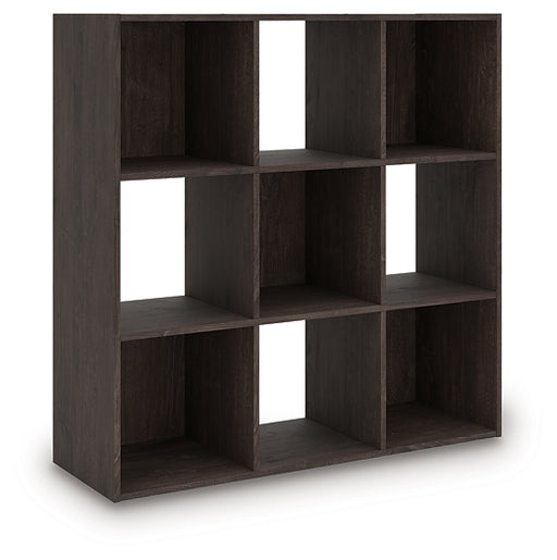 Signature Design by Ashley®Keep clutter out from underfoot with this nine-cube organizer. The dark charcoal finish is remarkably versatile, all while keeping your toys, knick...