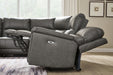 Details Includes 6 pieces: left-arm facing power recliner, armless chair, power armless recliner, console with storage, wedge and right-arm facing power recliner, One-touch power control with adjustable positions, Easy View™ adjustable headrest and zero-draw USB-A and USB-C ports, Zero-draw technology only consumes power when the USB receptacle is in use, Zero-gravity mechanism allows optimum reclining comfort with infinite reclining positions at the touch of a button, Corner-blocked frame with metal reinforced seat; attached back and seat cushions, High-quality foam cushions wrapped in poly fiber, 100% top grain leather covers inside areas such as the back, seat and arm cushions; skillfully matched faux leather covers the remaining areas, Due to its natural origin, real leather can show individual characteristics such as healed scars, growth marks, grain variation and shade variation, Natural variations make each hide unique and do not detract from the wearing qualities of leather, Console with 2 cup holders and hidden storage, Zero wall recliner design requires minimal space between wall and chair back, Zero gap mechanism maintains consistent lower back and lumbar support throughout every stage of reclining for the ultimate relaxation experience, Power cord included; UL Listed