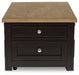 | Details | Made with acacia solids, acacia veneer and MDF substrate, Tabletop with light wood-tone finish, Dark chocolate brown body, Lift-top design, 4 smooth-gliding drawers, Casters for easy mobility | |