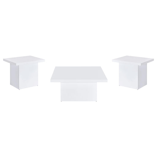 CoasterRadiant and refined, this coffee table set combines sculptural structure with a glossy white finish. Each piece features a thick square top resting...