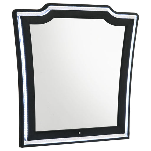 CoasterIlluminate your daily routine with this LED dresser mirror, fully wrapped in luxurious black velvet. Framed by ambient LED lighting, the tri-panel ...