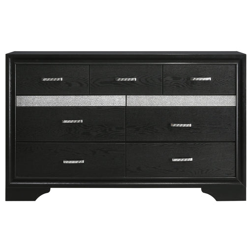 CoasterGlittering trim and a black finish create a sense of sophistication for a four-piece modern bedroom set. Designed to make a statement, the set focu...