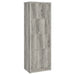 Tall and slender, this modern media tower is the perfect complement for your entertaining needs in both compact and larger spaces. Organize media, books, and implements on shelves and interior shelves, staying organized and uncluttered. Melamine construction features a distressed weathered gray finish with grain-like markings, offering rustic vibes. Find space on three fixed shelves and one adjustable shelf, all ready to separate and store gaming supplies, media, or books. A single black finished metal hardware pull offers an ideal match.