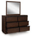 | Details | PCB857B7: Includes canopy, upholstered headboard, footboard, rails, posts and slats, Made with hardwood solids, mango wood veneer and MDF substrates , Side rails feature laminated solid hardwood slat support rails (or LVL) with glued and screwed blocking for added strength, Complex, rich dark brown finish, Foam headboard cushion with polyester upholstery , Measure room, including ceiling height, to ensure bed clears fans and light fixtures, Foundation/box spring required, sold separately , Mattress available, sold separately , USB-A and USB-C charging ports, Power cord included; UL Listed, Assembly required, PCB857B1: Made with hardwood solids, mango wood veneer and MDF substrates , Complex, rich dark brown finish, Full-length metal rail pulls with matte black finish, 6 smooth-gliding drawers with fully finished interiors, dovetail construction and heavy-duty ball-bearing side glides (top drawers felt lined), Mirror attaches to back of dresser, Soft rounded pilasters, Raised plinth base, PCB857-46: Made with hardwood solids, mango wood veneer and MDF substrates, Complex, rich dark brown finish, Metal rail pulls with matte black finish, 5 smooth-gliding drawers with fully finished interiors, dovetail construction and heavy-duty ball-bearing side glides (top drawer felt lined), Soft rounded pilasters, Raised plinth base, PCB857-92: Made with hardwood solids, mango wood veneer and MDF substrates, Complex, rich dark brown finish, Metal rail pulls with matte black finish, 2 smooth-gliding drawers with fully finished interiors, dovetail construction and heavy-duty ball-bearing side glides (top drawer felt lined), Soft rounded pilasters, Raised plinth base, | |