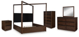 Dilenno California King Canopy Bed with Mirrored Dresser, Chest and Nightstand
