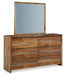 | Details | B790B5: Includes panel headboard, panel footboard, rails and slats , Made with sheesham wood, veneer and MDF substrate, Clear natural wood-tone finish , Headboard with beveled frame, Foundation/box spring required, sold separately , Mattress available, sold separately, Assembly required, B790B1: Includes dresser and mirror, Made with sheesham wood, veneer and MDF substrate, Clear natural wood-tone finish , Front frame with thick beveled edge, 6 smooth-gliding drawers with fully finished interior, dovetail construction and heavy duty ball-bearing side glides, Mirror attaches to back of dresser, | |