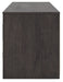 This TV stand with electric fireplace embraces a classically charming aesthetic and repurposes it for modern living. Its dark charcoal finish appeals to your love of vintage character, while a chic chevron pattern is effortlessly on trend. Media accessories stay tucked away in style thanks to hidden storage behind the doors. And for added ambiance, the electric fireplace brings a cozy-cool vibe to your living room. With the touch of a button, activate the LED-lit flame and adjust the temperature or the flame brightness. The flame effect includes multiple color options and a realistic-looking faux birch log set.