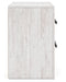 Details Made with engineered wood (MDF/particleboard/plywood) and decorative laminate for the right balance of affordability and durability, Whitewash replicated worn through paint with authentic touch, Decorative laminate replicates natural or man-made material surfaces with consistent color, pattern and texture, Large handles with black finish, 2 smooth-gliding drawers, Framed front and pilasters, Minor assembly required