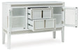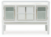 Embracing modern glamour, this server is a sparkling addition to your dining area. The bright white lacquer finish, shimmering rhinestone accents and glass panel doors give this piece plenty of polish. Discreetly placed along the upper valance, white LED lighting adds the perfect finishing touch.