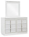 | Details | Includes dresser and mirror, Made with solid wood components, MDF substrate and decorative laminate, White lacquer finish, Vertical metal drawer pulls, Built-in LED lighting with 3-way dimmer switch, 6 drawers with fully finished interior, dovetail construction and heavy duty ball-bearing side glides, Drawers with rhinestone frames; textured laminate drawer fronts, Mirror attaches to back of dresser, Power cord included; UL Listed | |
