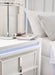 | Details | Made with solid wood components, MDF substrate and decorative laminate, White lacquer finish, Vertical metal drawer pulls, Built-in LED lighting with 3-way dimmer switch, 2 drawers with fully finished interior, dovetail construction and heavy duty ball-bearing side glides, Drawers with rhinestone frames; textured laminate drawer fronts, 110V power supply with USB-A and USB-C charging ports, Power cord included; UL Listed | |