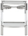 | Details | Made with acrylic, metal and glass, Lower open shelf, Chrome plated metal legs with clear acrylic accents, Assembly required | |