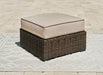 Who says the great outdoors isn’t made for luxury living? This cushioned ottoman offers all the high-end design, plush comfort and durability you could ask for, and then some. Its all-weather, rust-proof aluminum frame provides the easy-breezy wicker look you love without the high maintenance. Rest assured, the high-performing Nuvella® fabric is made to stand up to the elements.