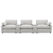 • Soft grey fabric upholstery provides a plush, inviting seating experience