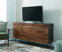 | Details | Made with sheesham wood, mango wood, veneer and engineered wood, Natural and deep brown finish, Hardware with black finish, 3 doors with soft-close hinges, 2 fixed shelves, Openings in back for electronics, Minor assembly required, simply lay flat and attach feet | |