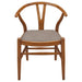 Small kitchens and dining spaces take an early style lead with a casual dining set targeted at versatility and mid-century modern creds. This beautifully designed five-piece set offers construction of walnut finish rubberwoods, warm and inspiring of a coastal or Euro look. A convex tabletop profile embellishes the already fresh style of a geometric base with angled open sections interlocking at the base, forming a symmetrical and quirky design with extra verve. Four chairs are charming with a curved, slender back and accents, tapered legs and foot rails. Padded seat cushions with moderate molding are upholstered with neutral brown fabric.