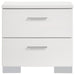 Modern design meets ambient lighting in this contemporary bedroom set. The bed features a white high gloss headboard with built-in blue LED lighting, activated by a convenient touch switch. A faux leather upholstered bed frame adds a refined touch, while matching storage elements offer smooth metal glides and chrome-finished details. With clean lines and integrated lighting, this set adds both functionality and visual impact to any modern bedroom.
