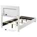Illuminate your bedroom with the modern design of this LED bed. The headboard features a sleek white high gloss frame with built-in blue LED lighting, operated by a touch switch for convenience. The bed frame is upholstered in smooth white faux leather, enhancing its contemporary appeal. Designed for style and comfort, this bed brings a striking yet functional centerpiece to your space, blending modern aesthetics with subtle ambient lighting.