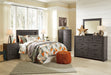 Details B249B1: Includes dresser and mirror, Made with engineered wood and decorative laminate, Dark charcoal finish over replicated oak grain, 7 smooth-gliding drawers; 3 drawer sizes, Linear pulls with dark pewter-tone finish, Mirror attaches to back of dresser, Safety is a top priority, clothing storage units are designed to meet the most current standard for stability, ASTM F 2057 (ASTM International), Drawers extend out to accommodate maximum access to drawer interior while maintaining safety , Assembly required, B249-87: Hardware not included, Made with engineered wood (MDF/particleboard/plywood) and decorative laminate for the right balance of affordability and durability, Dark charcoal finish over replicated oak grain, ¼" bolts are needed to attach headboard to existing bed frame, Bolt length depends on thickness of your bed frame, Assembly required,