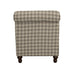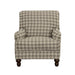 Create a beautifully styled living room that exudes classic character. This modern farmhouse accent chair makes any living space feel a bit more inviting. A rolled back and tailored English arms add a dash of character to its classic silhouette. A plush, padded seat creates a comfortable space to enjoy hours of casual lounging. This grey chair boasts a charming houndstooth pattern all over for a charming accent to any room.