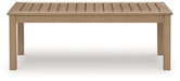 This coffee table is a beautiful addition to any outdoor living space. Effortless in its simplicity, this piece echoes your easygoing sensibilities. Combining durable, cutting-edge engineered materials, its Weatherwood construction in a blond wood color enhances the contemporary design. Pair this table with the matching sofa and chairs for a spectacular backyard or patio seating arrangement.