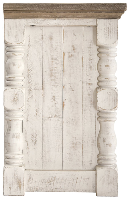 | Details | Made of pine wood, pine veneers and engineered wood, Two-tone distressed finish: weathered gray top; vintage white base, TV stand with 2-door cabinet with single-shelf storage and 2 open shelves, Aged iron-color hardware, Cutouts for wire management, Assembly required | |