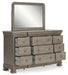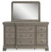 Details B924B4: Includes panel headboard and sleigh footboard with rails, Made with hardwood solids, birch veneer and MDF substrate, Light gray finish enhances the natural wood grain, Foundation/box spring required, sold separately, Mattress available, sold separately, Assembly required, B924B1: Includes dresser and mirror, Made with hardwood solids, birch veneer and MDF substrate, Light gray finish enhances the natural wood grain, Ring pull hardware, 9 drawers with fully finished interiors, dovetail construction and ball-bearing side glides, Jewelry drawer conveniently located in the center valance, Mirror attaches to back of dresser,