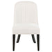 • Side chairs upholstered in cream fabric with soft vertical channel detailing
