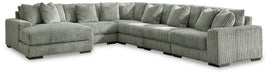 Details Includes 6 pieces: left-arm facing corner chaise, wedge, 3 armless chairs and right-arm facing corner chair, "Left-arm" and "right-arm" describe the position of the arm when you face the piece, Corner-blocked frame, Reversible cushions, High-resiliency foam cushions wrapped in poly fiber, Throw pillows included, Pillows with feather-fiber blend, Polyester upholstery, Exposed feet with faux wood finish, Platform foundation system resists sagging 3x better than spring system after 20,000 testing cycles by providing more even support, Smooth platform foundation maintains tight, wrinkle-free look without dips or sags that can occur over time with sinuous spring foundations