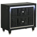 Bring luxe utility bedside with this two-drawer nightstand, where velvet elegance meets modern convenience. Wrapped in a black velvet, it features quilted textures, crystal knobs, and reflective acrylic accents beneath a clear tempered glass top. LED case lighting softly illuminates the silhouette, while a built-in USB charging port with USB-A and USB-C keeps devices close at hand. Designed with dovetail joinery, felt-lined drawers, and solid rubberwood leg, it blends softness, sparkle, and smart function.