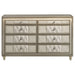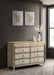 • Eight-drawer dresser fully upholstered in ivory and camel velvet for layered softness