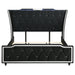 • Eastern king bed upholstered in a black velvet with tufted wingback silhouette
