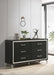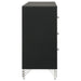 Accentuate surrounding decor with the sophistication of a modern six-drawer dresser. Designed for ample storage, it features a refined look with spacious drawers ideal for everything from clothing to accessories and linens. Its bold black finish is crisp and chic, complemented perfectly with rich, cool chrome trim that gleams in the light. Decorative legs have hairpin inspired style, offering a stylish touch of vintage energy. Long bar pulls complete the look with polished perfection.