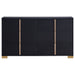 Gleaming gold accents create a sense of richness and elegance for a contemporary bedroom set. In a black finish that's crisp and timeless, the set offers a stylish, modern bed complete with a squared headboard and low footboard, offering an airy feel in your bedroom. The headboard is equipped with built-in LED lighting operated by touch switches on the left and right sides, within easy reach from either side of the bed. The mood lighting creates a lovely ambiance while accent pieces in the set offer plenty of storage. The dresser is topped with a framed mirror, great for opening your space and providing a great spot for choosing jewelry or a tie in the morning.