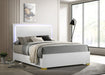 Explore the possibilities of modern features that render this chic bed a haven for relaxation and a comfy place to sleep and lounge. A stylish yet minimalist design feature is perfect for anchoring your contemporary bedroom. Assembled of wood products and melamine laminate, it offers updated and sturdy construction. Ethereal energy-efficient lighting frames its tall headboard, operated with a touch mechanism through headboard-mounted buttons. Gleaming gold metal finish feet are petite yet noticeable.