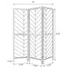 • Three-panel room divider with a bold herringbone pattern for a modern touch