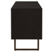 • Elevate your entertainment area with a TV stand featuring a dramatic charcoal black finish, infusing a bold and elegant touch