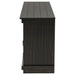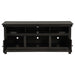 Complete a media center in your inviting home with a modern farmhouse TV stand. It's an approachable design with roughhewn wood details that create texture and dimensionality in your living space. Two shelves and six compartments create ample storage, perfect for everything from peripherals and accessories to personal decor. The media console features a clean-lined silhouette with a slim profile, perfect for a flat panel or wall-mounted television. This TV stand accommodates televisions up to 65 inches.