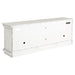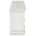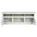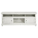 Introduce expansive storage underneath your flat panel television with this modern farmhouse TV stand. It's a wooden design with roughhewn details that offer charming texture and casual allure in your living room or den. Two cabinets offer decorative doors while providing plenty of interior storage that helps to create a tidy look in your living room. Two open shelves create space for media and gaming components mixed with decor that offers a personalized touch. Cord management openings complete the design, making for a streamlined design that accommodates televisions up to 75 inches placed on top or mounted above.