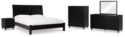 Details B1013B5: Includes headboard, panel rails, footboard with rails and roll slats, Made with engineered wood (MDF/particleboard/plywood) and decorative laminate for the right balance of affordability and durability, Matte black finish with subtle replicated wood grain, Decorative laminate replicates natural or man-made material surfaces with consistent color, pattern and texture , Bed does not require a foundation/box spring , Mattress available, sold separately , Minor assembly required, B1013B11: Includes dresser and mirror, Made with engineered wood (MDF/particleboard/plywood) and decorative laminate for the right balance of affordability and durability, Matte black finish with subtle replicated wood grain, Decorative laminate replicates natural or man-made material surfaces with consistent color, pattern and texture, 6 smooth-gliding drawers, Drawer interiors are lined with a faux linen laminate for a clean, finished look, Integrated drawer pulls, Framed front and pilasters, Mirror attaches to back of dresser; can also be mounted on wall horizontally or vertically, Safety is a top priority, clothing storage units are designed to meet the most current standard for stability, ASTM F 2057 (ASTM International), Drawers extend out to accommodate maximum access to drawer interior while maintaining safety, Minor assembly required, B1013-345: Made with engineered wood (MDF/particleboard/plywood) and decorative laminate for the right balance of affordability and durability, Matte black finish with subtle replicated wood grain, Decorative laminate replicates natural or man-made material surfaces with consistent color, pattern and texture, 5 smooth-gliding drawers, Drawer interiors are lined with a faux linen laminate for a clean, finished look, Integrated drawer pulls, Framed front and pilasters, Safety is a top priority, clothing storage units are designed to meet the most current standard for stability, ASTM F 2057 (ASTM International), Drawers extend out to accommodate maximum access to drawer interior while maintaining safety, Minor assembly required, B1013-92: Made with engineered wood (MDF/particleboard/plywood) and decorative laminate for the right balance of affordability and durability, Matte black finish with subtle replicated wood grain, Decorative laminate replicates natural or man-made material surfaces with consistent color, pattern and texture, 2 smooth-gliding drawers, Drawer interiors are lined with a faux linen laminate for a clean, finished look, Integrated drawer pulls, Framed front and pilasters, USB and wireless charging options, Power cord included; UL Listed, Minor assembly required,