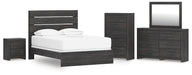 Hollivern Queen Panel Bed with Mirrored Dresser, Chest and Nightstand