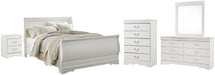 | Details | B267B4: Includes headboard, footboard and rails, Made of engineered wood (MDF/particleboard) and decorative laminate, Whitewash replicated worn through paint with authentic touch, Foundation/box spring required, sold separately, Mattress available, sold separately, Assembly required, Bed is compatible with an adjustable base, B267B1: Includes dresser and mirror, Made of engineered wood (MDF/particleboard) and decorative laminate, Whitewash replicated worn through paint with authentic touch, Replicated wood grained block pattern with authentic touch, Antiqued brass-tone knocker hardware, 6 smooth-gliding drawers, Mirror attaches to back of dresser, Safety is a top priority, clothing storage units are designed to meet the most current standard for stability, ASTM F 2057 (ASTM International), Drawers extend out to accommodate maximum access to drawer interior while maintaining safety, Assembly required, B267-46: Made of engineered wood (MDF/particleboard) and decorative laminate, Whitewash replicated worn through paint with authentic touch, Replicated wood grained block pattern with authentic touch, Antiqued brass-tone ring-pull hardware, 5 smooth-gliding drawers, Safety is a top priority, clothing storage units are designed to meet the most current standard for stability, ASTM F 2057 (ASTM International), Drawers extend out to accommodate maximum access to drawer interior while maintaining safety, Assembly required, B267-92: Made of engineered wood (MDF/particleboard) and decorative laminate, Whitewash replicated worn through paint with authentic touch, Replicated wood grained block pattern with authentic touch, Nightstand beautifully suits coastal cottage and shabby chic decor, 2 smooth-gliding drawers, Antiqued brass-tone ring-pull hardware, 2 slim-profile USB charging ports, Power cord included; UL Listed, Assembly required, | |
