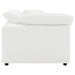 • Ivory boucle upholstery is soft and inviting, with modern appeal for a fresh, updated look