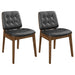 Timeless mid-century inspiration meets modern craftsmanship in this upholstered dining chair set. Each chair features a rich natural walnut frame with a curved veneer backrest that adds warmth and dimension. Black tufted leatherette upholstery enhances the seat and back, providing both comfort and sophistication. Designed for lasting support, these chairs are crafted from durable rubberwood and LVL. Their clean lines and vintage styling make them a perfect fit for retro, transitional, or contemporary dining spaces.