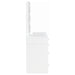 • Three-piece white finish vanity set, perfect for a modern bedroom setup