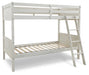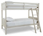 Details Includes twin bunk bed panels and twin ladder/rails/slats, Made with hardwood solids, birch veneer and MDF substrate, Antiqued white finish with grain texture, Top bunk with protective side rails, Sturdy ladder leads to top bunk, The Consumer Product Safety Commission states top bunks not be used for children under 6 years of age, Bed does not require additional foundation/box spring; accommodates most zero clearance adjustable bases, Mattresses available, sold separately?, Assembly required