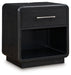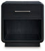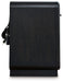 | Details | Made with hardwood solids and ash veneer, Black finish on textured wood grain surface, Brushed nickel-tone pulls, Waterfall edges, Smooth-gliding drawer with fully finished interior, dovetail construction and heavy duty ball-bearing side glides, Lower cubby shelf with built-in LED nightlight, 110V power supply with USB-A and USB-C charging ports, Power cord included; UL Listed | |