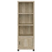 Conveniently designed in a vertical orientation, the Sachin media tower saves precious space in your compact or large living space. Make the most of a rustic look with a tower built of wood products with engineered veneer. Earth-inspired finishes mesh with most surroundings. Four storage compartments and three fixed shelves behind one side-open door invite media, books, or electronic components. Make this media tower an integral part of your updated entertainment plan.